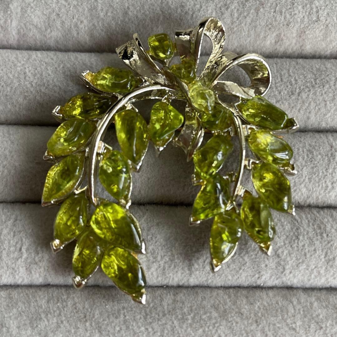 グリーン ナチュラル ストーン ゴールド カラー ブローチ